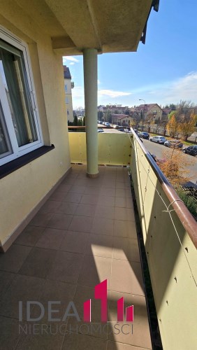 Salon z wyjściem na duży rogowy balkon, sypialnia, aneks kuchenny, łazienka z WC.